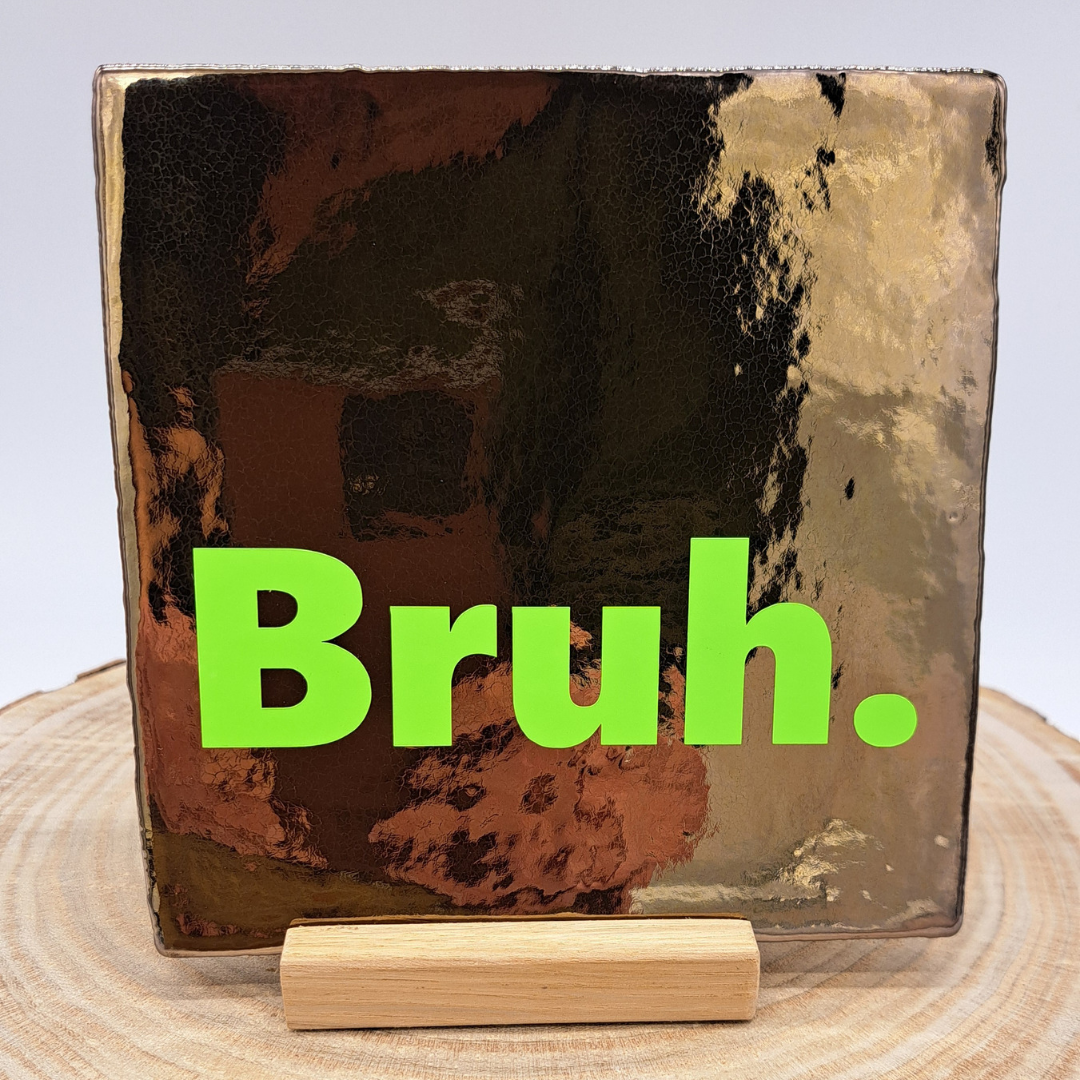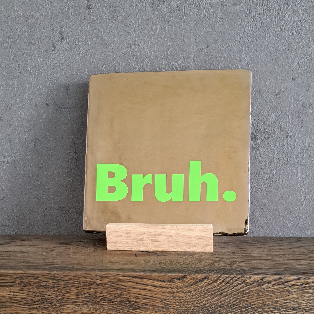 Tegeltje "Bruh.": gouden tegeltje met lime opdruk.