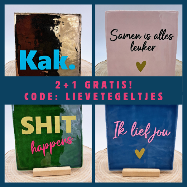 - bij aankoop van 3 tegeltjes: code LIEVETEGELTJES
